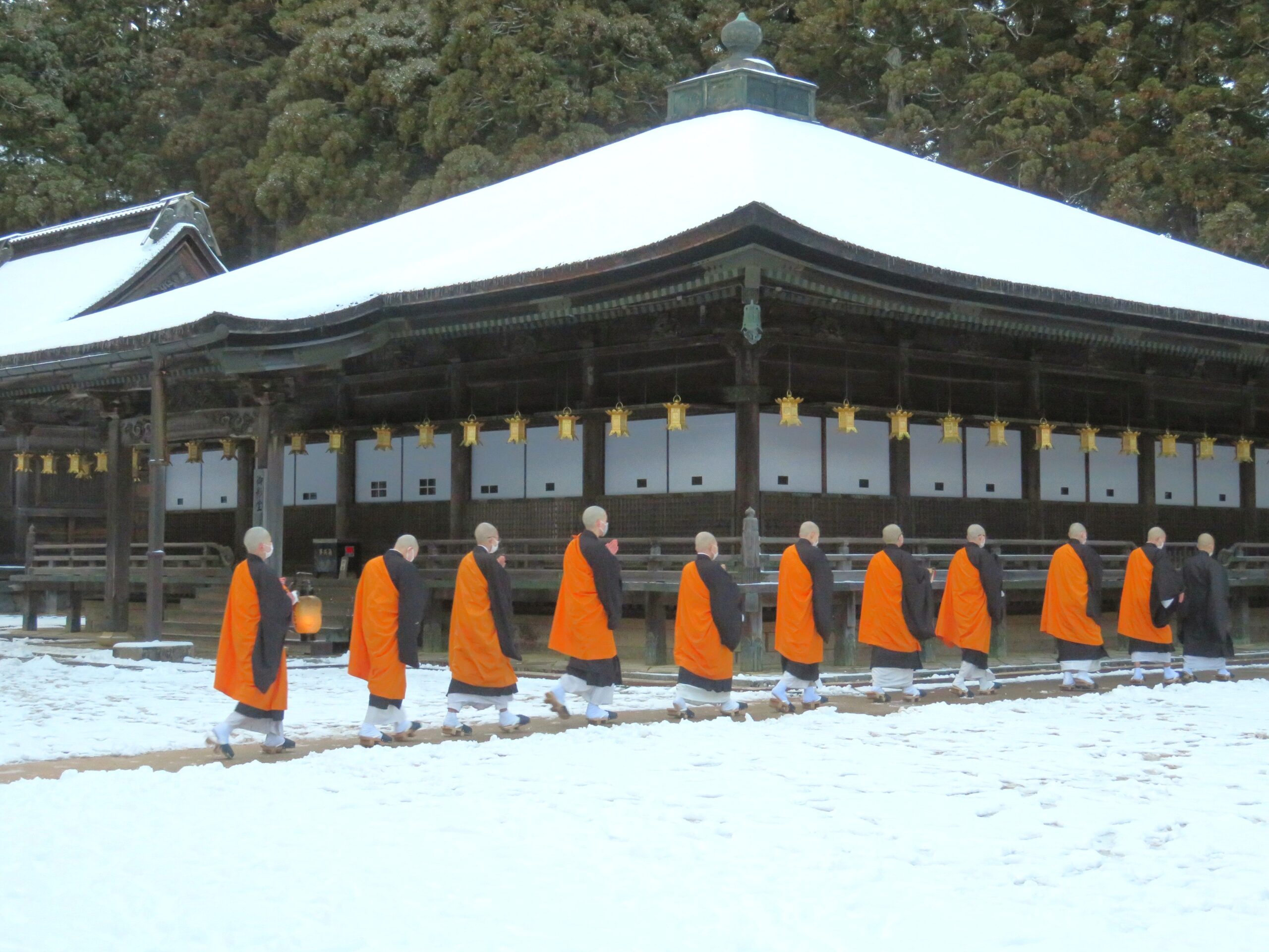 令和6年12月、第8回四国遍路結願の報告に高野山に登った時のものです。朝早くから、若い修行僧の皆さんが弘法大師を祀る御影堂(国宝)に参詣する光景に出会いました。日々修行を続ける若い人たちに刺激されて改めて自分を見直す時間となりました。